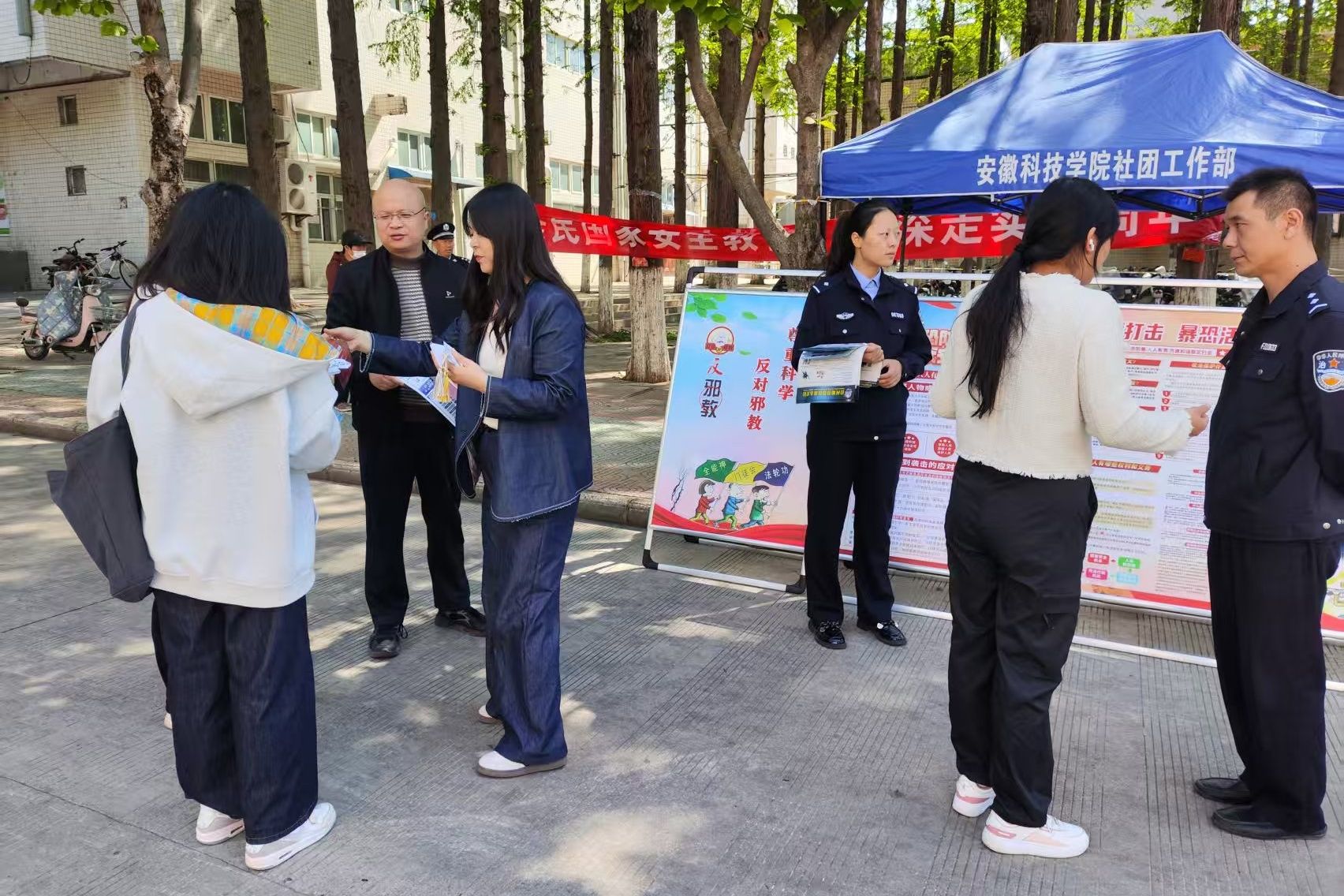 4月15日上午,校保卫处、保密办联合凤阳县公安局、府城派出所在凤阳校区警务站前开展反邪教、反暴恐、反间防谍、防电诈及保密等安全宣教活动。活动通过悬挂横幅、设置宣传展板、警官现场讲授安全知识、发放安全教育宣传传单及保密文化用品等活动,营造了浓厚的“国家安全、关系你我”宣传教育活动氛围,向全校师生宣传普及了一堂关于国家安全教育知识的生动课程。