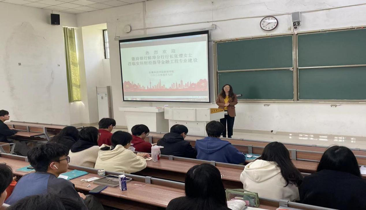 4月7日,财经学院结合《金融理论与实务专题讲座》等课程,邀请徽商银行蚌埠分行行长张缨和中国邮储银行五河支行行长许何来我校展开《信贷业务发展及趋势》《普惠金融发展现状和趋势》专题讲座。财经学院院长郝世绵和金融工程教研室主任王勇出席并主持会议。