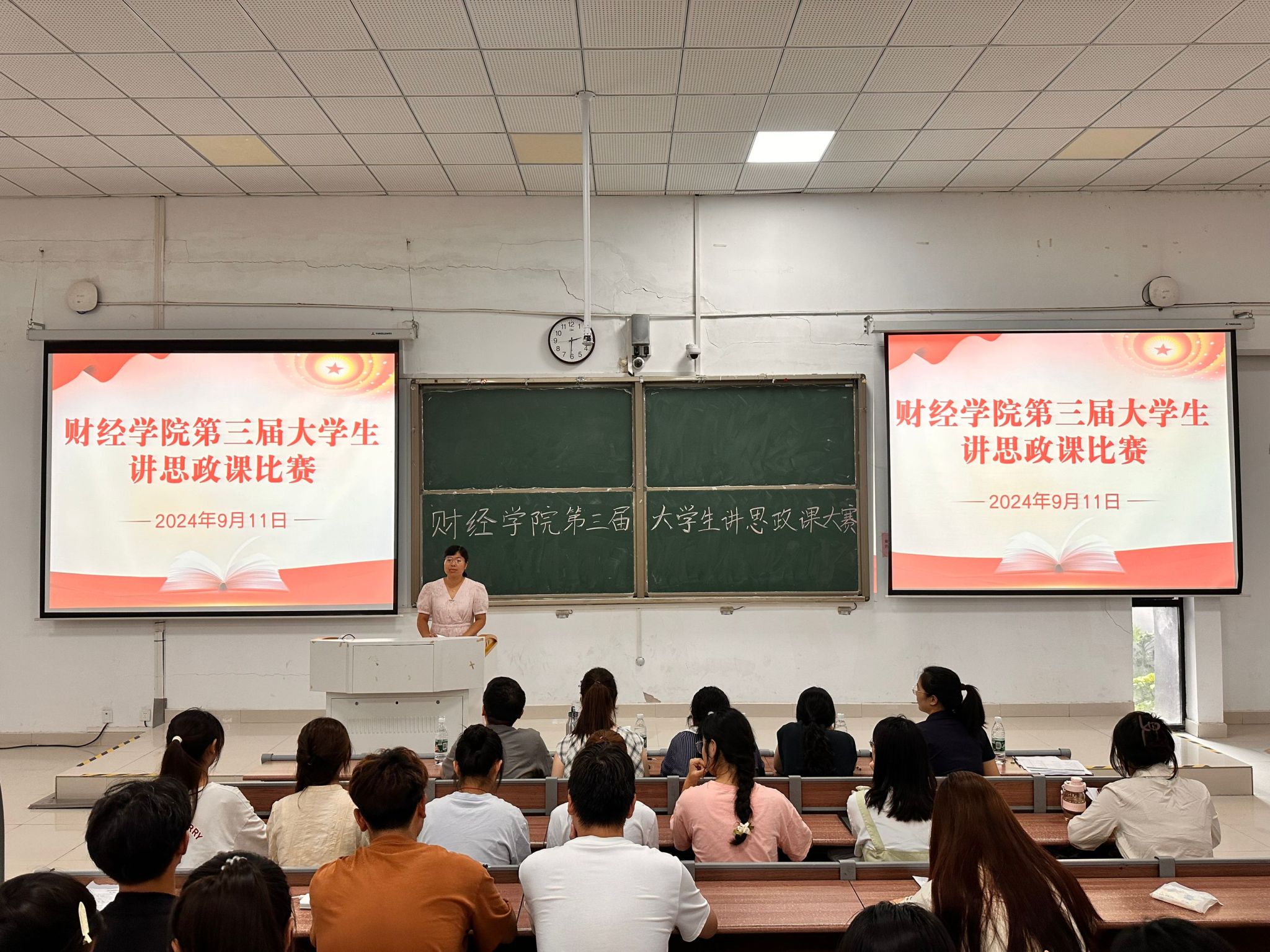 为充分发挥思政课程在大学生思想政治教育中的重要作用,不断提升青年大学生马克思主义理论素养,9月11日下午,由财经学院主办、“才菁”研习社承办的财经学院第三届大学生讲思政课比赛在致知楼C111教室举行。学院部分骨干教师应邀担任评委。