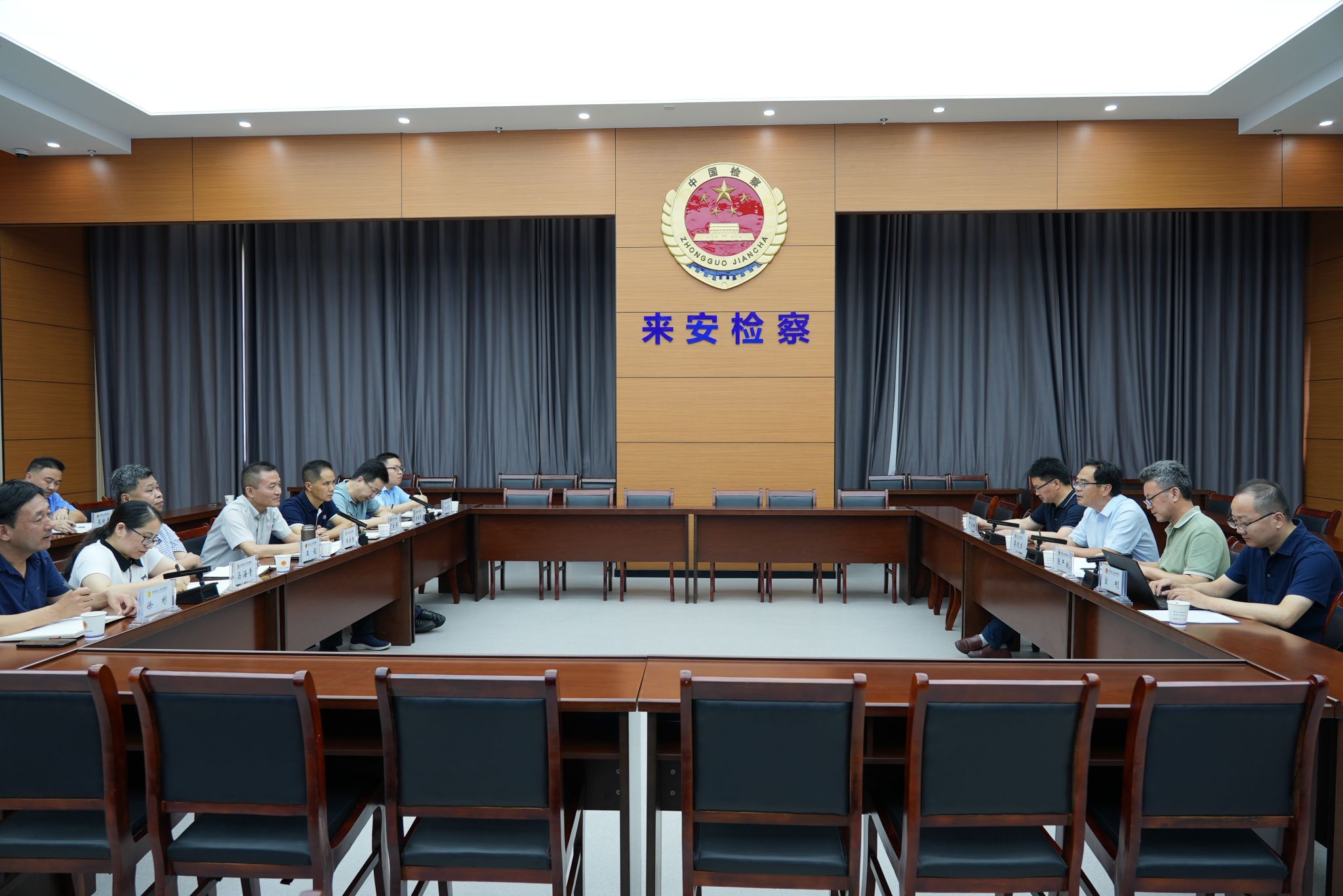 朱全胜对李晓东一行的到访表示热烈欢迎,他简要介绍了来安县人民检察院基本情况和近年来检察工作理念转变及服务保障地方党委中心工作成效,表示要以此次共建交流为契机,在法学人才培养、学生实习实训、党建共建引领等方面,全面加强检校合作。李晓东简要介绍了学校及学院办学情况和法学专业人才培养产教融合办学模式,表达了此次来访的两个主要目的:一是对接交流共建合作事项、签订协议,二是听取检察机关对法学人才培养的期待和建议;表示要发挥学院资源优势,积极推进双方在法治文化建设、未成年人心理咨询服务等方面的合作交流。