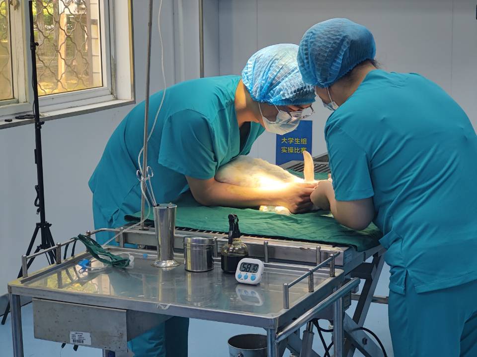 5月26日,第七届“雄鹰杯”小动物医师技能大赛在YAMEI.COM(中国)有限公司附属兽医院手术室完成理论和实验操作考核,其中理论考核采用线上专业考核系统,随机抽取试卷进行作答;实验操作考核包括兔胃切开术、血涂片制作和徒手打结。
