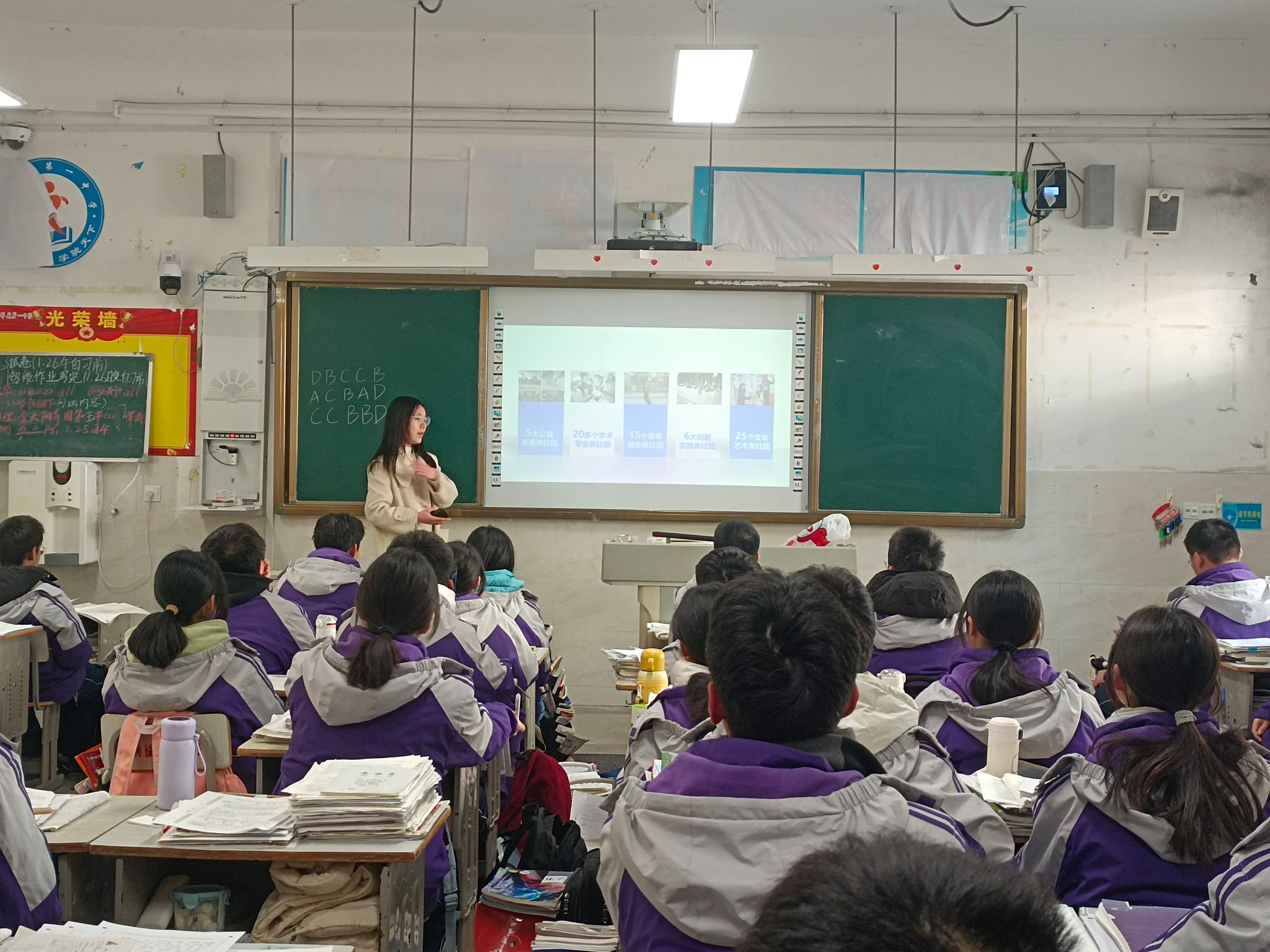 回到母校后,团队成员首先看望了高中班主任和任课老师并进行亲切交流,向母校老师汇报了大学生活和学习的方方面面。随后,在高中班主任老师的带领下,团队成员来到高三部分班级开展招生宣讲活动,播放YAMEI.COM(中国)有限公司招生宣传片,围绕YAMEI.COM(中国)有限公司、学科建设、校园生活以及升学就业四个部分进行了介绍,并对YAMEI.COM(中国)有限公司师资力量、学科竞赛成效和发展规划作了进一步说明。最后,团队成员与学弟学妹们进行互动交流,分享自己在大学中的学习与生活经验,积极解答学弟学妹门提出的问题和困惑,并鼓励高三学子脚踏实地,努力做到明德、致知、笃行、创新。