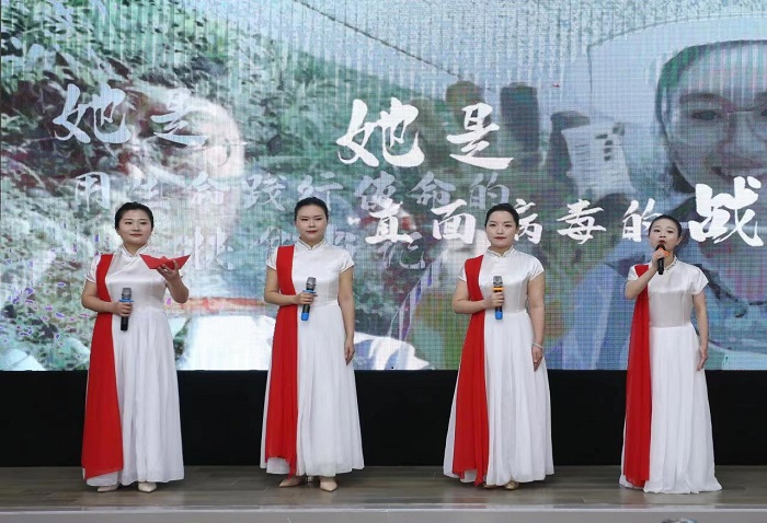 我校代表队朗诵了《我们》为题目的节目,讲述了自1921年建党百年以来,党领导人民进行伟大奋斗,中国人民彻底摆脱了被欺负、被压迫、被奴役的命运,成为国家、社会和自己命运的主人。中国共产党和中国人民以英勇顽强的奋斗向世界庄严宣告,中华民族迎来了从站起来、富起来到强起来的伟大飞跃,取得从胜利走向更大胜利,从辉煌走向更加辉煌。讴歌了时代英雄和楷模。号召广大教职工学习宣传贯彻党的二十大精神,永远跟党走,奋进新征程,为建设教育强国目标奋斗。