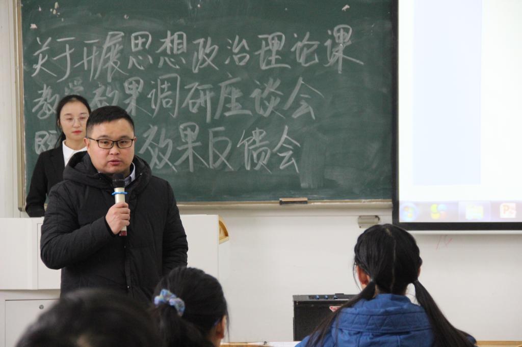 各学生代表在会议上纷纷发言,对学校思想政治理论课教学效果予以反馈,认为思政课任课教师授课方式多样化,能够密切联系实际,注重与学生互动,课程资料搜集丰富、更新及时,充分调动了学生的学习积极性和主动性。同时,也反映了本学期班级课程中个别老师教学没有针对性,课程比较枯燥乏味,此外还存在课堂管理不严、教学手段单一、教学感染力不强等相关问题,希望得到进一步改进。
