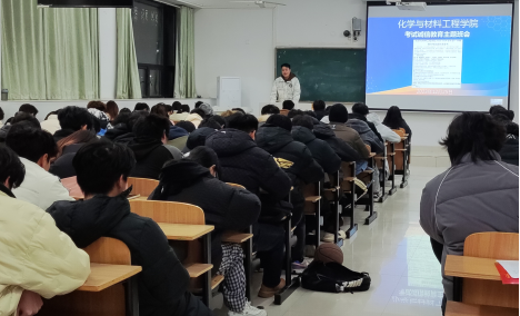 为进一步提高同学们的诚信文明意识,12月20日至30日,化学与材料工程学院组织全体辅导员开展了以”诚信文明应考,展现青春风采”为主题的班会。进一步加强考风考纪建设,提升学生为期末考试营造公平、公正、诚信的考试环境。