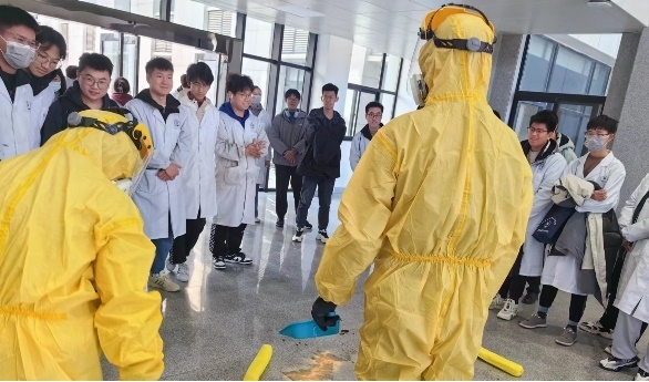 开展实验室安全应急演练。12月8日,学校在龙湖校区尚行楼C栋一层实验室开展“有机化学品与危险废物泄漏事故”应急演练活动。从紧急组织疏散实验师生,封锁事故现场,清查人数,确认全员安全撤离,领导组安全评估,到两位教师穿戴专业防护装备进入现场应急安全处理,演示了发生危险化学品泄漏事故后的处置流程。学校教务处、保卫处和学院安全领导小组成员、学院师生等100余人参加演练。