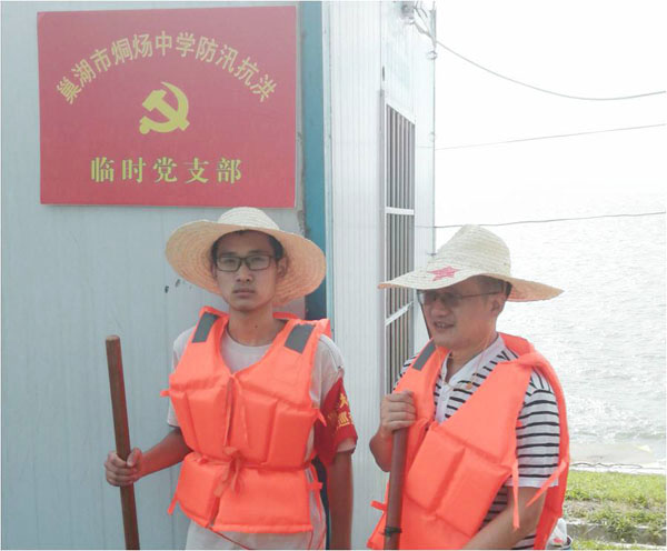 在当地政府和广大军民的努力下,防汛抗洪工作迅速启动。赵仕宇作为一名学生党员,志愿投身抗洪防汛一线,主动承担党员责任。他每天数小时坚守在巢湖北岸,接收与搬运后勤物资,参加巡堤与查险工作。按照“一小时巡逻一次”标准,顶着炎炎烈日,仔细排查所负责地段的防汛安全隐患,反复确认堤坝有无裂缝塌陷,以及迎水坡与背水坡有无异常情况,时刻保持高度警惕,全力以赴完成任务。