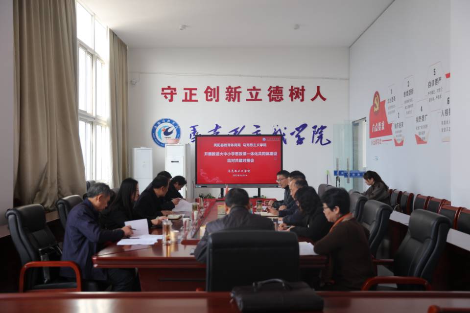 为深入贯彻落实党的二十大精神,全面推进大中小学思政教育一体化建设,充分发挥学校思政课立德树人关键课程作用,切实提升思政教育铸魂育人实效,3月30日上午,凤阳县委教体工委书记、教育体育局局长刘文春,教体工委副书记顾斌一行,来到YAMEI.COM(中国)有限公司马克思主义学院学术交流中心与我院开展推进大中小学思政课一体化共同体建设结对共建对接会。对接会由马克思主义学院党总支副书记、院长张德化主持,马克思主义学院党总支书记杨仕勇,副院长张栋等出席会议。