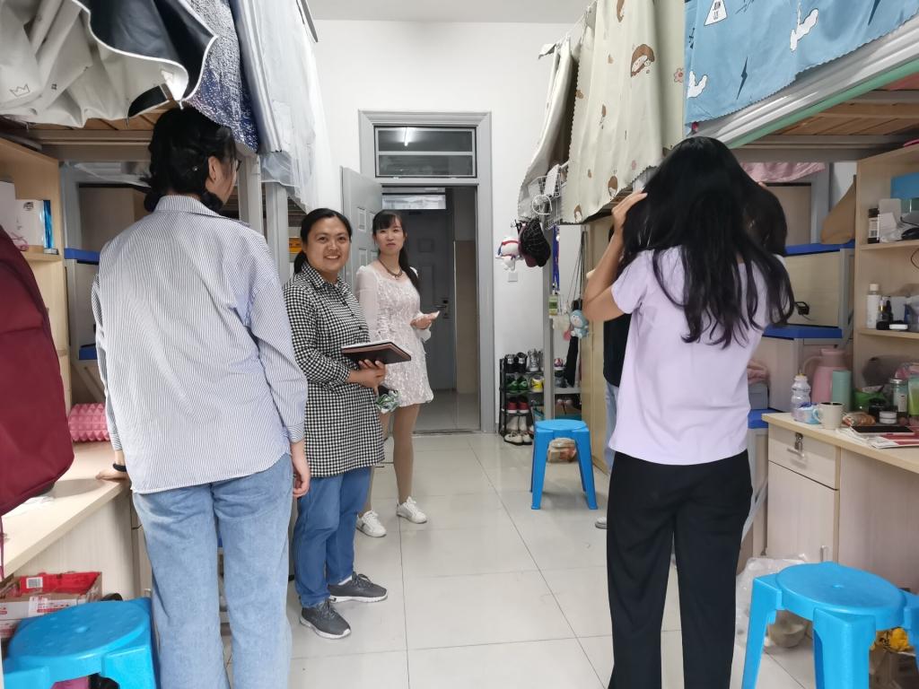 在走访过程中,杜小明和住宿学生进行了亲切地交流和慰问,向住宿学生了解宿舍生活情况,询问同学们日常生活中遇到的问题,给予相应的生活建议,随后耿广汉对学生宿舍安全隐患进行了排查,对住宿学生强调了寝室安全问题,对学生外宿情况也进行了排查。