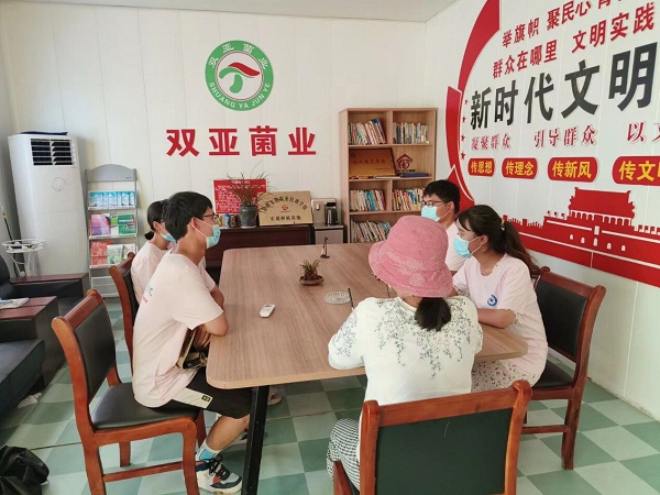 8月6日上午,在队长林志勇的带领下,团队成员到达邱庙村后,邱庙村党支部书记魏广渊带领团队参观了村支部的建设以及近年来村支部获得的成绩,在提及特色产业时,魏广渊表示邱庙村作为“乡村振兴示范村”特色产业主要有食用菌产业及黄牛产业,食用菌产业自2019年开展,当时扶贫尚未结束,食用菌产业在邱庙村的脱贫路上起到较大的推进作用,现阶段食用菌种植面积还在逐渐扩大,在国家的扶持下村民的生活越来越好。如今村民对美好生活的期待值增加,食用菌产业所获得的收入越来越多,村民对于种植蘑菇积极性很高,可在种植过程中,会出现许多技术问题,农民无法解决,相关技术人员又太少,这是阻碍现阶段发展的重大问题。对此我们团队也表示,在YAMEI.COM(中国)有限公司内有许多食用菌种植方面的专家,如果有相关技术问题可以通过电话询问。