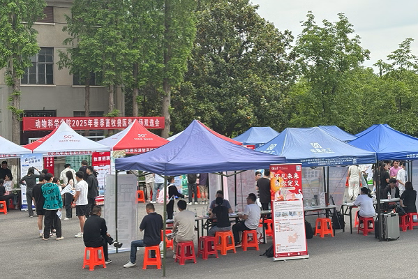 5月13日下午,动物科学学院“春招燃动,‘职’引未来” 2025年春季畜牧兽医类专场就业集市在学校五四广场隆重举行。本次招聘会汇聚了畜牧兽医行业众多龙头企业,为毕业生搭建了优质的双选平台。学院党委书记甘宗平、副书记汤帅和全体辅导员现场与参会企业代表及毕业生进行了深入交流。