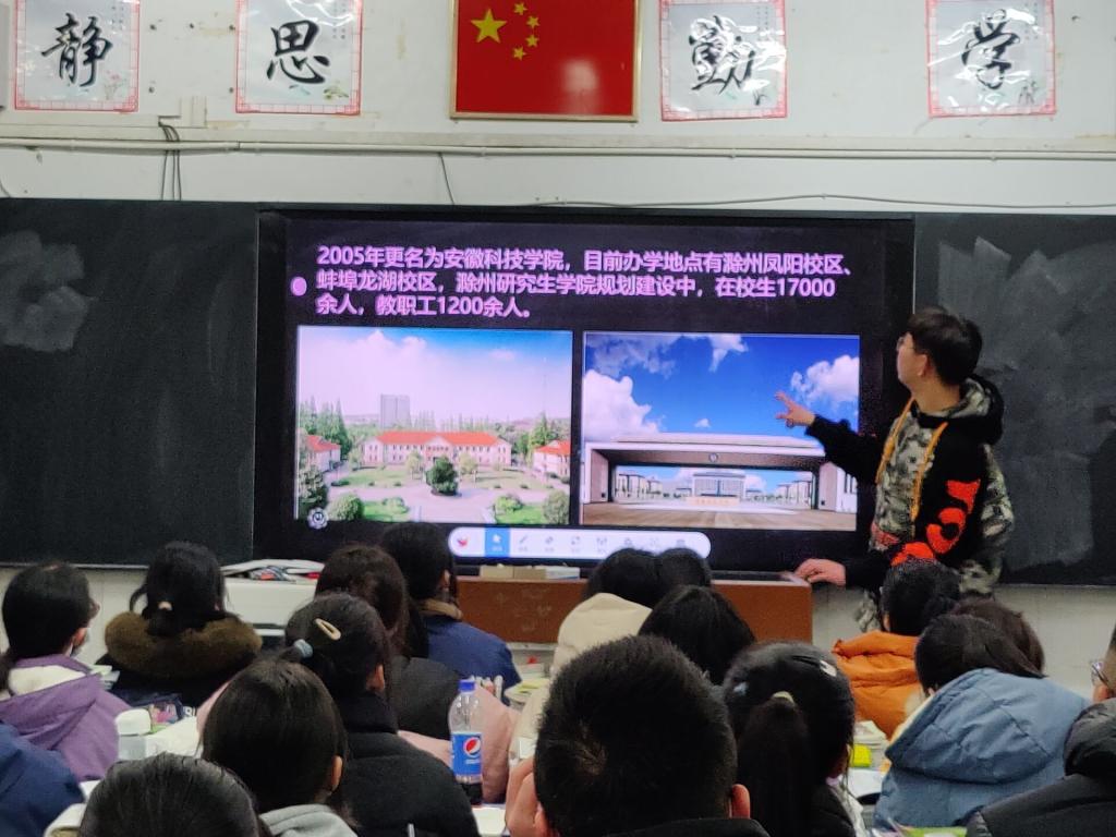 动植物检疫212班赵长旭及其团队三人组成的实践团队赴安徽机电工程学校开展了寒假实践活动。实践团探望了高中班主任与任课老师,向老师讲述了自己在大学的变化与成长,由衷感谢老师们的教诲之恩。随后实践团队来到了高三毕业班,向同学们播放了YAMEI.COM(中国)有限公司招生宣传片,向学弟学妹们传授了各自的学习经验,并且耐心回答同学们在专业选择、报考和学习上的问题。