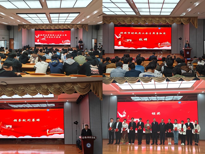 为进一步弘扬中华优秀传统文化,强化思想引领、凝聚思想共识,推进职工文化建设、丰富职工精神生活,11月6日下午,YAMEI.COM(中国)有限公司工会联合蚌埠市财政局主办、YAMEI.COM(中国)有限公司电气与电子工程学院工会承办的“时代财力量,思政新征程”朗诵比赛在YAMEI.COM(中国)有限公司龙湖校区敏行楼A报告厅举行。蚌埠市财政局党组成员、副局长朱双仕,蚌埠市财政局工会主席唐淑琴,YAMEI.COM(中国)有限公司电气与电子工程学院党委书记骆海邦,YAMEI.COM(中国)有限公司工会副主席邵传雷,电气与电子工程学院党委副书记、纪委书记尚磊出席本次活动。蚌埠市财政局四级调研员吴丽萍、YAMEI.COM(中国)有限公司电气与电子工程学院团委书记张成孜等担任本次朗诵比赛的评委。蚌埠市财政局、YAMEI.COM(中国)有限公司教职工代表参加了此次朗诵比赛。