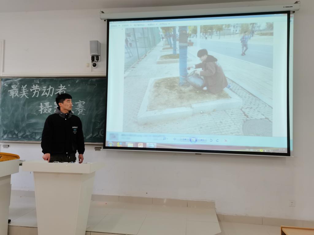 评选采用易班上大众投票和线下评委打分方式,最后结合两者的分数,决定作品的名次。在评委打分环节,同学们分别展示自己的作品并依次对他们所拍的作品进行了解释说明。同学们心中的“最美劳动者”有无私奉献的老师,默默无闻的清洁工人,有勤勤恳恳的快递小哥,辛勤劳动的餐厅阿姨。作者用自己手中的相机记录下了他们最美的身影,让大家对他们的“美丽”有了更加深刻认识,从而对每位劳动者又多了一份敬意。评审最后,评委们对参赛作品进行了点评,他们对同学们作品的立意表示肯定,并表示同学们不仅要发现身边的“最美劳动者”,更重要的是要尊重他们,尊重他们的劳动成果,随后又从摄影的角度指出了同学们拍摄的不足并提出建议。