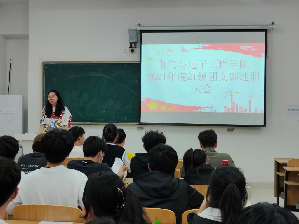 2022年4月16日晚,电气与电子工程学院团委在致知楼C209召开2021级团支部书记述职评议大会。学院团委书记张成孜,2020级各班级班长、团支部书记、宣传委员、组织委员担任评委。会议由团委组织部孙荣耀主持。