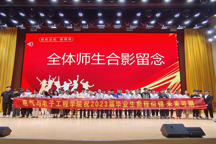 6月8日晚,电气与电子工程学院2023届毕业典礼于东辅楼报告厅隆重举行。学院党委书记骆海邦,党委副书记、院长夏显明,党委副书记、纪委书记尚磊,副院长国海,副院长樊晓宇,校团委副书记王乐,党政办公室主任王延丽,团委书记张成孜出席典礼,学院各系室负责人,专职辅导员及2023届毕业生参加典礼。典礼由骆海邦主持。