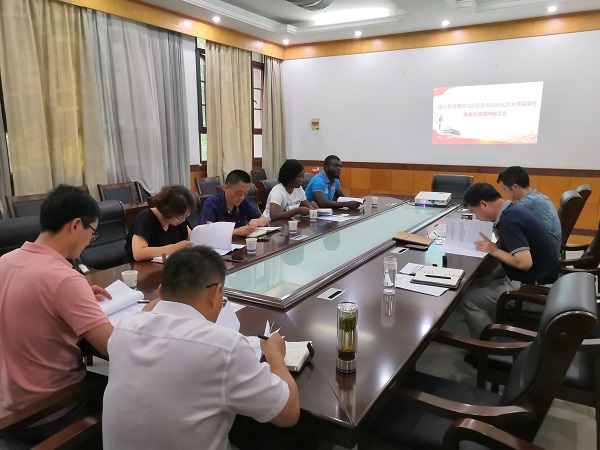 会上,与会人员认真学习了习近平总书记给北京大学留学学生重要回信,并交流了心得体会。