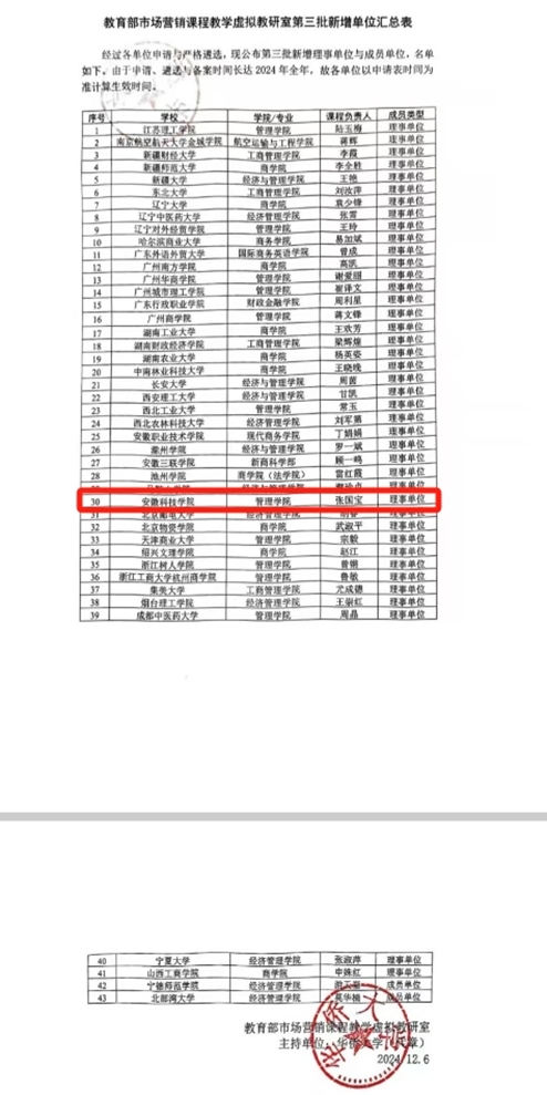 管理学院市场营销专业入选教育部市场营销课程教学虚拟教研室理事单位