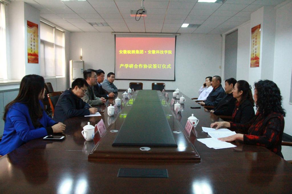 11月10日下午,管理学院院长赵伟峰、副院长张德化、营销系主任张国宝、管理系主任程业炳,副主任郑谦等一行赴安徽皖酒集团洽谈校企合作具体事宜并签订产学研合作协议,受到集团党委书记兼总经理陈翔、党委副书记高国才、工会主席金亚新和销售部部长倪颖等的热情接待。
