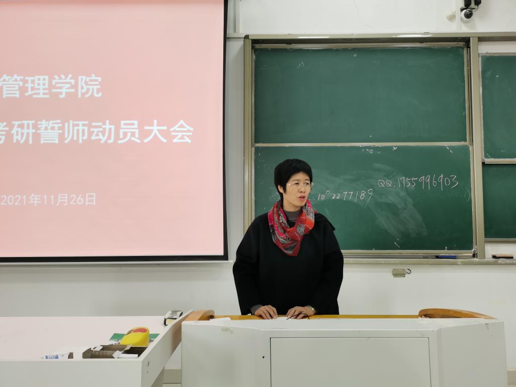 陶漫表示,管理学院一直以来高度重视学生考研工作,竭尽全力为考研学生提供力所能及的帮助。她简要介绍了学院对考研学生助力支持的种种措施,分享了往届学生研究生考试经验,希望全体考研学生调整心态,坚持到底,充分利用最后的一月时间,以昂扬的精神面貌迎接初试到来。