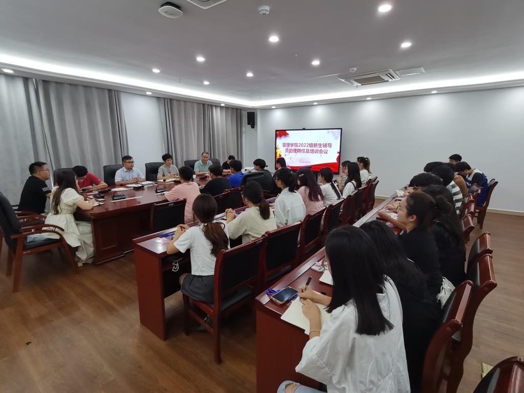 新生开学在即,为切实做好2022级新生工作,近日,管理学院举行2022级本科新生辅导员助理聘任及培训会议。校招生与就业工作处副处长何晓冬、院党委副书记陶漫及全体新生辅导员出席会议,会议由党政办公室主任李永鹏主持。