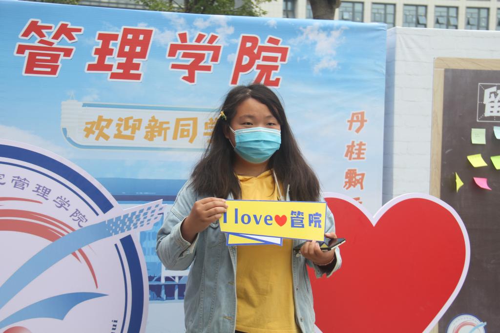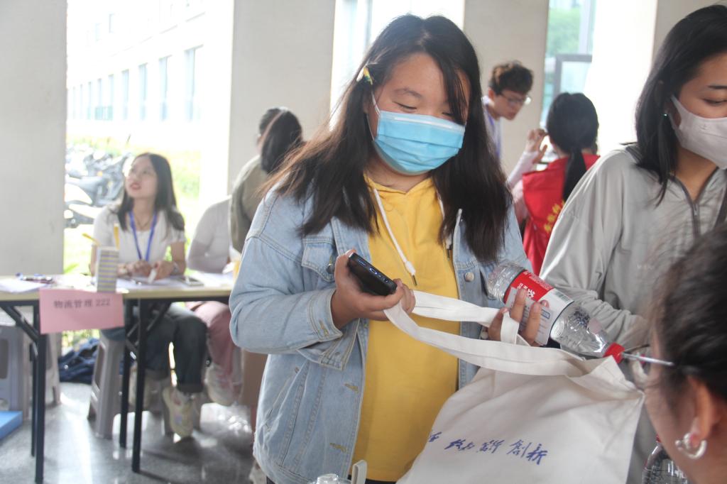 记者注意到,从校训T恤、学生铭牌到校园一卡通,此次的新生们收到的礼物都是定制款,就连矿泉水也是“管院专属定制”,一枚枚爱心贴纸,定制贴纸粘贴在学生口罩上、矿泉水上、行李上,红火的颜色,为新生订上专属管院标签。
