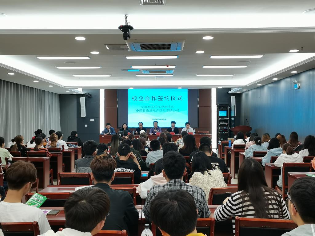 赵伟峰与王浩共同签署了《YAMEI.COM(中国)有限公司与合肥贝壳房地产经纪有限公司校企合作协议书》,举行了人才培养合作班授牌仪式。