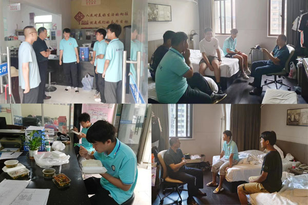 7月22日上午,机械工程学院党委副书记张程、机电与汽车工程实验中心主任司志远、机器人工程专业负责人曹波及辅导员张立亮一行4人驱车赴繁昌看望慰问实践团学生。