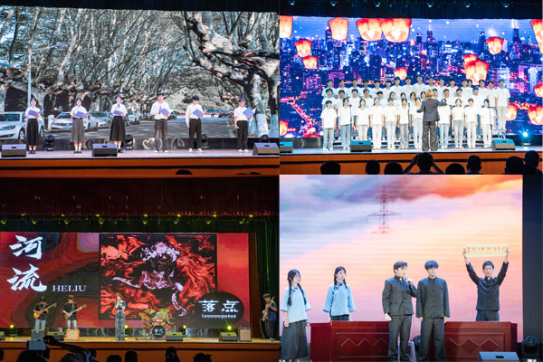 在校“落点”乐队高亢激扬的歌声中,晚会文艺节目正式拉开序幕。歌曲《河流》、小品《时间都去哪儿了》、情景朗诵《青春》、合唱《灯火里的中国》、古风串烧《风起梨园》、舞蹈《Drama》以及歌曲《一路生花》和朗诵《东华路9号,再见》等节目,充分展示了青年大学生的青春活力、技能才艺以及校园生活的多彩美丽,举手投足和字里行间流露出了毕业生对校园生活依依眷念、对母校和老师们感恩之情。晚会在蔡炜煜、付晨宇两位辅导员老师《凤凰花开的路口》的对毕业生不舍和美好未来的祝福歌声中圆满落幕!
