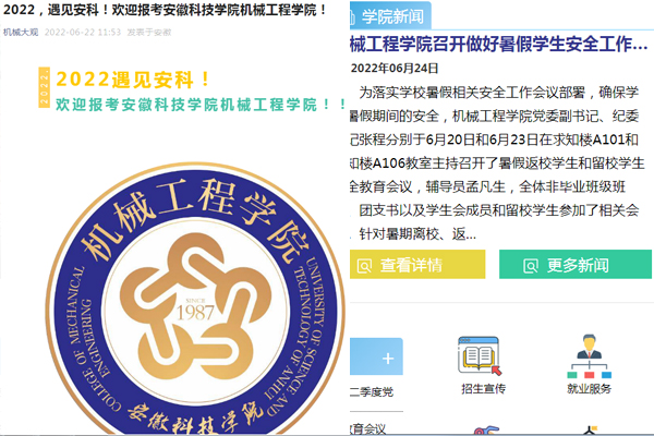 此外,结合开展“我回母校说安科”2022年暑期社会实践专项行动,机械工程学院还组织学生党员和低年级学生干部,回到各自母校和当地周边学校,发放学校和学院招生宣传资料,现身说法宣传安科和机械工程学院,同时向考生及家长推送“安科之生”相关视频、机械大观微信公众号等招生宣传线上资料。