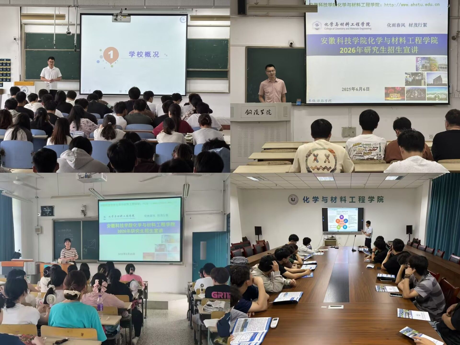 5月到6月,化学与材料工程学院研究生招生宣讲团队先后走进淮南师范学院、皖西学院、巢湖学院和铜陵学院,开展2026年材料与化工专业硕士研究生招生宣讲会。