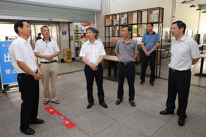 学生返校牵动着校领导的心,上午9时许,校党委书记蒋德勤,党委副书记、校长李震,党委委员、副校长黄远友在有关部门负责同志陪同下全面检查学生返校工作。在各学院学生报到点,校领导详细了解第一批学生返校及防疫物资准备情况,要求各学院本着安全第一的原则精心为返校学生做好服务工作。在学生食堂,校领导认真检查消毒清洁工作,详细了解菜品供应和学生错峰就餐安排情况;在学生宿舍,校领导与刚返校的学生亲切交谈,关切的询问同学们在家期间学习生活情况,热烈欢迎同学们安全返校。校领导对返校报到各项工作表示肯定,要求各部门、各学院继续高度重视疫情防控工作和学生返校工作,及时发现问题,迅速整改落实;关注学生思想动态,做好各类学生的跟踪管理服务;认真思考谋划,统筹做好疫情防控和教育教学工作,确保学生生命安全和身心健康。