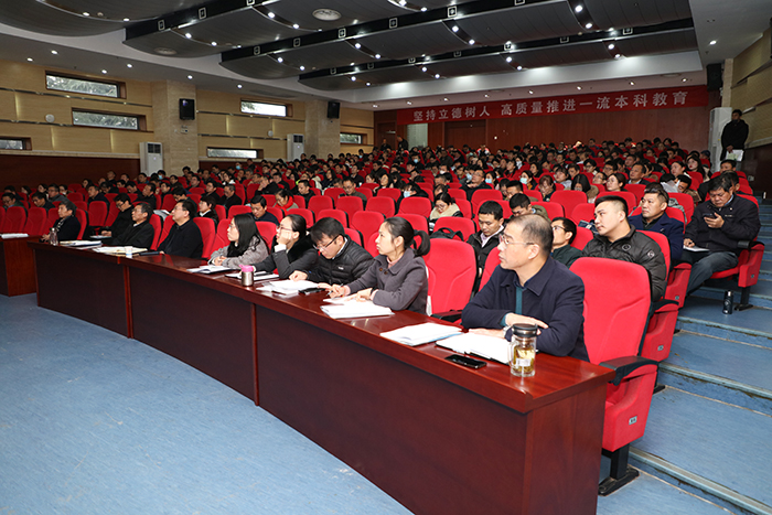 全体处级干部,教学单位具有副高以上职称或博士学位的教学科研人员,系主任、教研室主任和实验室(中心)主任,教务处、督导考核办公室、科研处、人事处、学生处、继续教育学院、图书馆等部门科级干部,教师代表、学生代表共计350人参加了开幕式。(特约通讯员:于卉 摄影:陈宝 审核:俞浩 卫胜 编辑:汤帅)