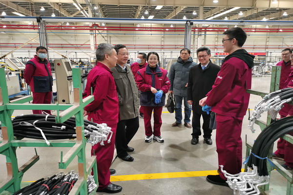 黄远友一行深入江淮汽车制管有限公司生产车间,看望慰问机械工程学院2015届毕业生、技术主管刘云杰和2020届毕业生刘鑫鑫、陈雅洁、张振,特别叮嘱今年刚入职的3位同学要珍惜在国有汽车企业的就业岗位、珍惜人生第一份工作,多向车间老师傅、领导和学长学姐虚心请教,扎根企业、勤学苦练,尽快成长为企业的技术和管理骨干;并勉励大家继续加强外语学习,更好地服务国家“一带一路”倡议和中国汽车企业走向世界。江淮汽车制管有限公司党支部副书记、总经理助理赵建和技术部主任,都对我校毕业生扎实的专业基础、过硬的实践技能和吃苦耐劳的优秀品质给予了充分肯定,希望有更多的安科优秀学子加盟江淮汽车的未来发展。