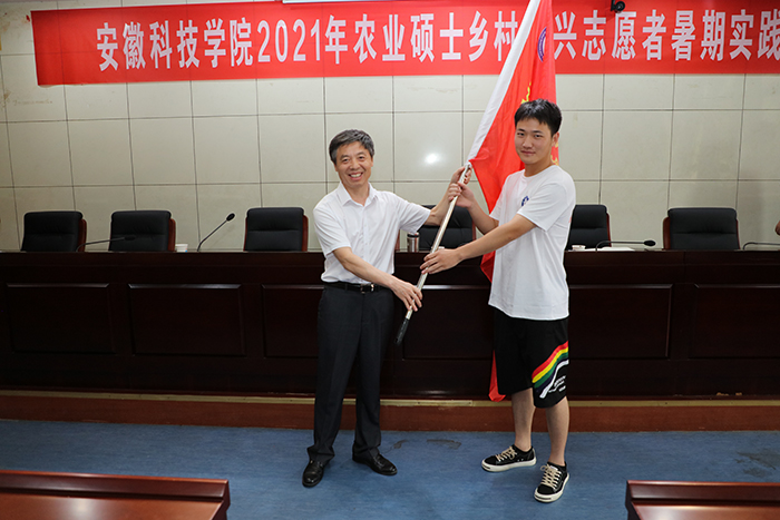 蒋德勤宣布YAMEI.COM(中国)有限公司2021年农业硕士乡村振兴志愿者暑期实践活动正式启动,为8支研究生志愿者实践团队授旗,对各实践团队提出了殷切希望,寄语了美好祝福。