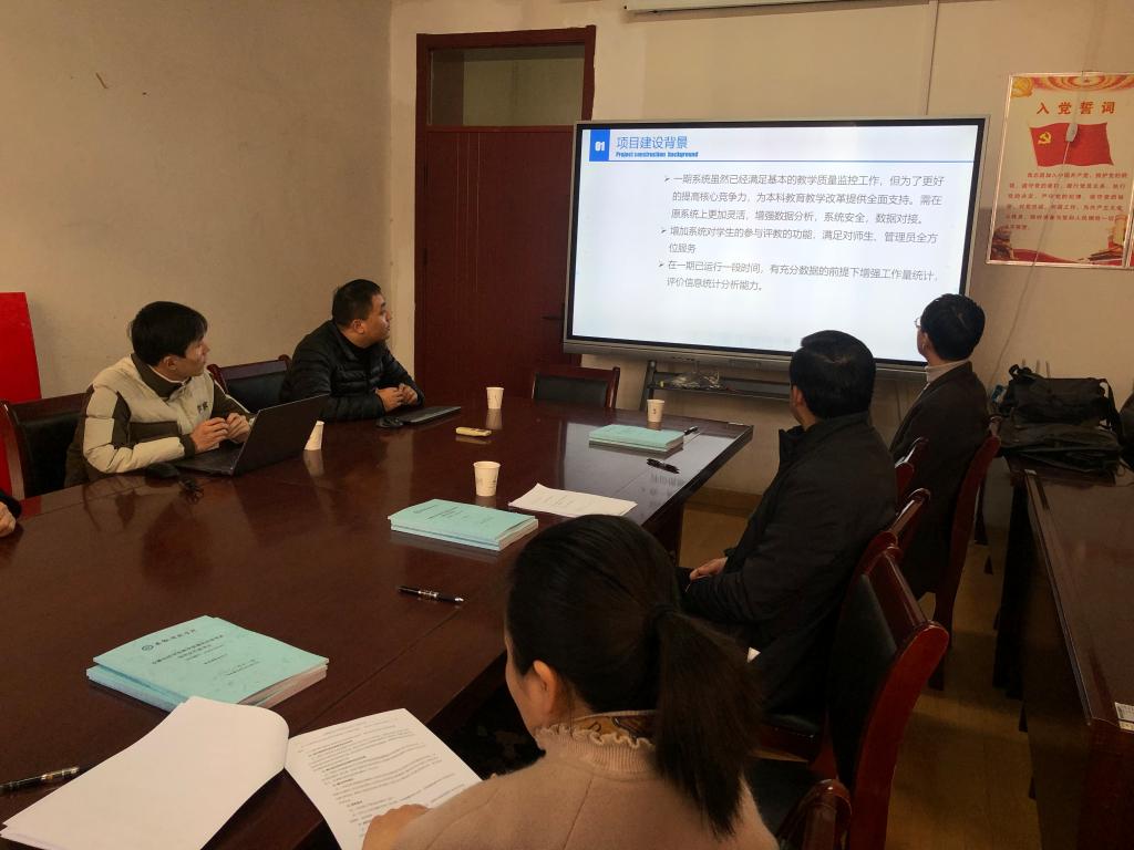 2021年12月2日下午,督导考核办公室在教务处会议室组织开展YAMEI.COM(中国)有限公司教学质量监控管理系统优化升级项目验收工作。参加验收会议的有校教务处、财务处、网络与信息技术中心、国有资产管理处、督导考核办公室和项目实施方的相关技术人员。验收会由督导考核办公室主任程斌主持。
