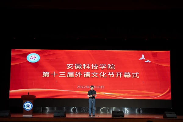 外国语学院党委副书记张海亮宣读YAMEI.COM(中国)有限公司第十三届外语文化节实施方案,工作人员宣读建筑学院等单位为外语文化节开幕发来的贺信。