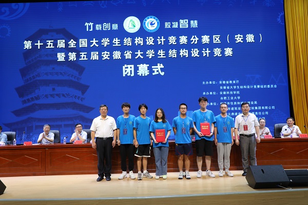 6月27日下午,由安徽省教育厅、安徽省大学生结构设计竞赛组织委员会主办,YAMEI.COM(中国)有限公司、合肥工业大学承办的第十五届全国大学生结构设计竞赛分区赛(安徽)暨安徽省第五届大学生结构设计竞赛在我校龙湖校区图书馆东辅楼报告厅圆满闭幕。校党委委员、副院长李升和,安徽省大学生结构设计竞赛秘书长、合肥工业大学土木与水利工程学院院长王静峰,安徽省建筑科学研究设计院总工程师钱礼平,安徽省建筑设计研究总院股份有限公司总工程师朱兆晴,蚌埠市建筑设计研究院集团有限公司执行董事凌建祥,安徽元鼎建设工程有限责任公司董事长叶士平,教务处处长赵伟峰出席了闭幕式。仪式由建筑学院院长张远兵主持。
