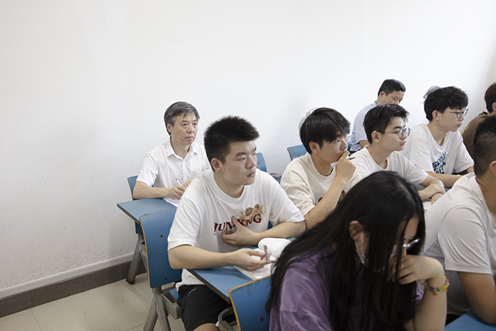 黄远友、李升和也按照既定听课方案,分别深入龙湖校区致知楼C107教室和凤阳校区求知楼A201教室与学生一起听课,并利用课间与师生进行交流,给予相关指导。