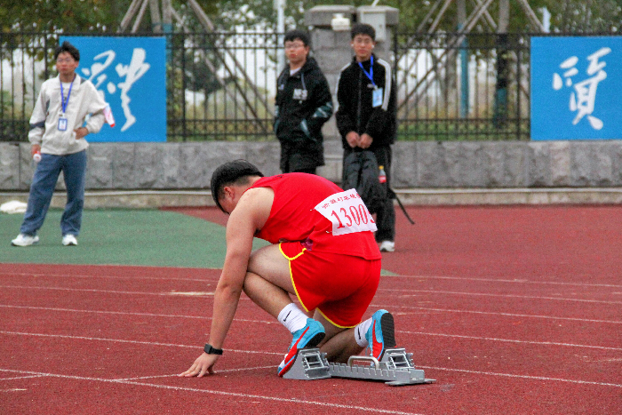 跑道上,无数次站在雪白的起跑线上,无数次抬眼望着前方,无数次品位失败的苦涩,无数次品尝胜利的甘甜。辉煌的背后是汗水,成功的背后是艰辛,为了这短短的四百米,你曾无数次的起跑与冲刺。冲吧!超越自己!
