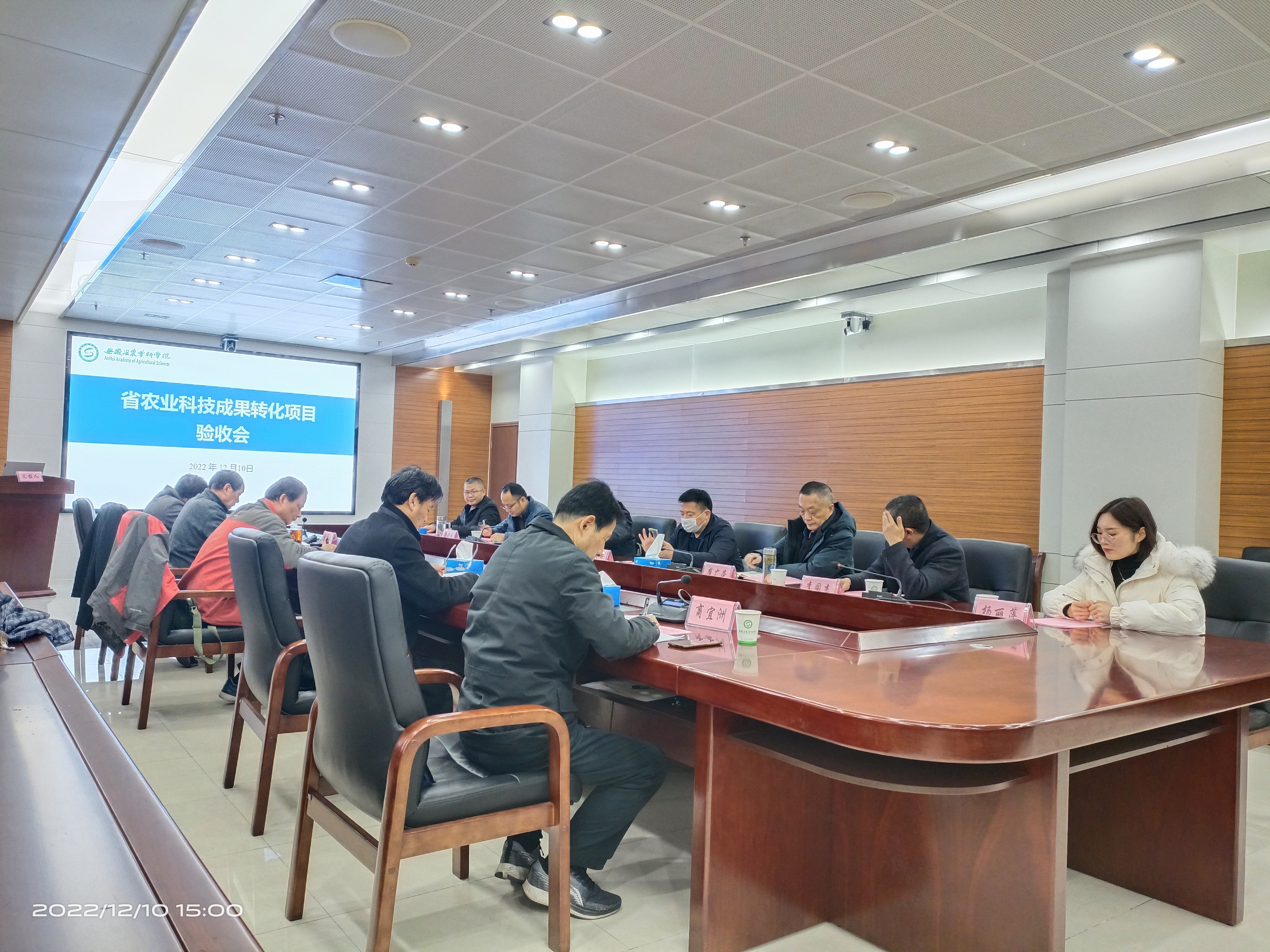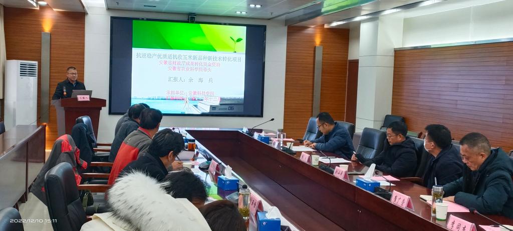 12月10日,由安徽省农业科学院牵头,我校承担的“抗逆稳产优质适机收玉米新品种新技术转化项目”历经一年,在安徽省农业科学院创新大楼二楼会议室进行结题汇报。省财政厅农业农村处主任科员梁晓天,安徽省农业科学院科研处处长李成、计财处处长刘小平,YAMEI.COM(中国)有限公司农学院院长崔广荣、科研处副处长李同杰,部分项目组成员出席会议。项目验收专家组由安徽省农业科学院研究员陈洪俭、安徽省农技推广总站副站长康子领、安徽省种子管理站研究员刘玉恒、合肥丰乐种业股份有限公司正高级农艺师张二朋、众华会计师事务所商宜洲等成员组成。会议伊始李成致辞,专家组观看了课题组精心准备的视频,余海兵教授代表项目组从课题研究背景、研究目标、研究内容、研究方法、研究成果等方面做了全面细致的汇报。