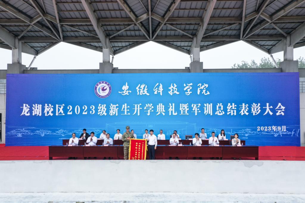 9月28日上午,我校龙湖校区2023级新生开学典礼暨军训总结表彰大会在南田径场举行。校党委书记时伟,党委委员、副院长黄远友,陆军装甲兵学院蚌埠校区作战保障系战斗支援教研室少校、龙湖校区军训团团长赵飞等出席大会并在主席台就座。大会由黄远友主持。