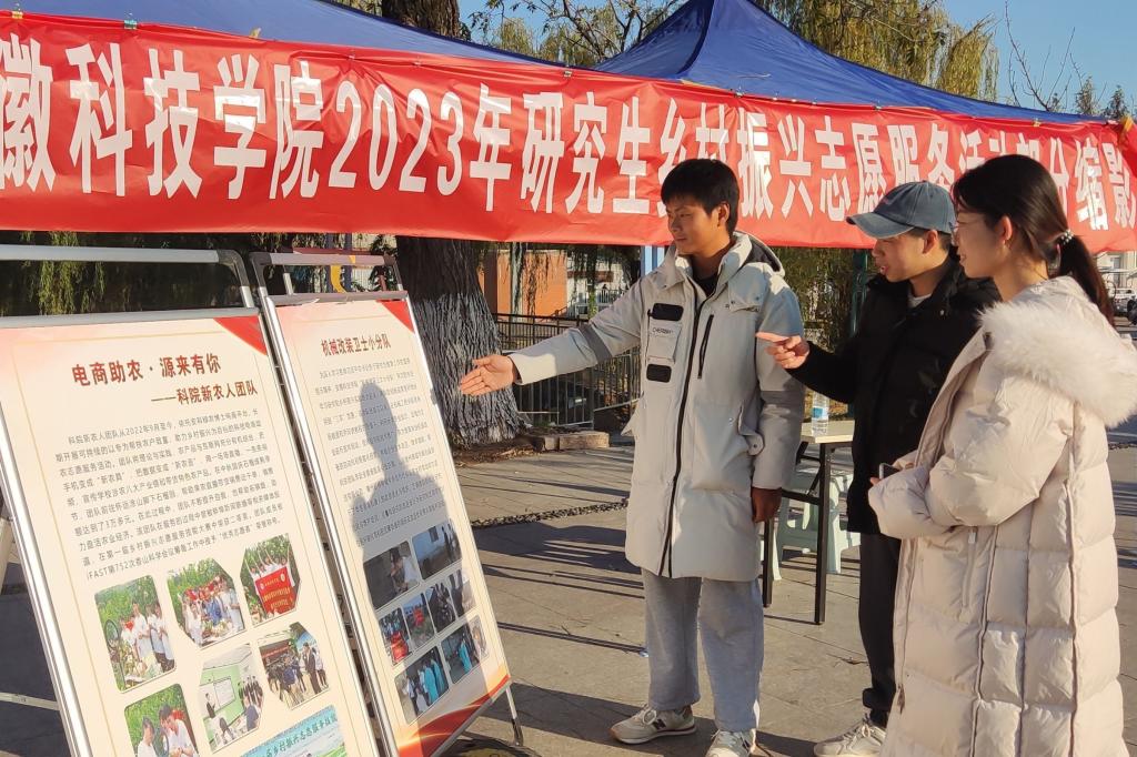 为集中展示过去一年来我校研究生助力乡村振兴取得的丰富实践成果,在赴小岗村开展主题实践活动的同时,在校内策划了为期5天的2023年研究生乡村振兴志愿服务活动成果展,自12月1日,展现我校青年研究生响应时代号召,积极投身乡村振兴一线,用实际行动践行志愿服务精神。展会现场,同学们积极询问了解我校志愿服务团队如何用双脚踏遍祖国大地,用耳朵倾听人民呼声,以及如何用心感受时代脉搏的实际情况。这些团队以满腔热情投身于乡村振兴的第一线,充分展现出我校研究生的良好形象和责任担当。