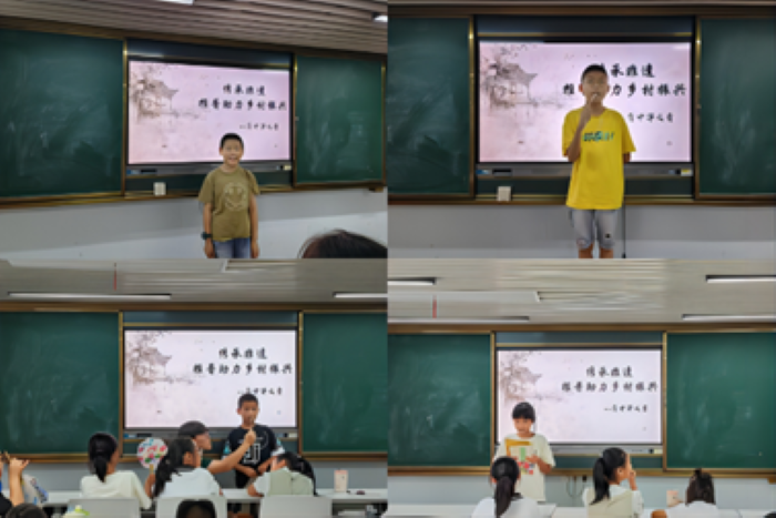 “小娃撑小艇,偷采白莲回。”随着一阵清脆的童声响起,广德市荷花社区的“暑期七彩课堂”内洋溢着欢声笑语,这位小朋友的表演是“普中华之音”团队与荷花社区“暑期七彩课堂”合作成果的一个缩影。7月7日至15日,化学与材料工程学院的“普中华之音”暑期“三下乡”社会实践团队第三次踏入这片熟悉的土地,为广德市的小朋友们带来了一场别开生面的普通话推广活动。他们依托社区的公益课堂,以普通话推广为主题,精心设计了一系列丰富多彩的活动,为当地的小朋友们和社区居民带来了不一样的体验。