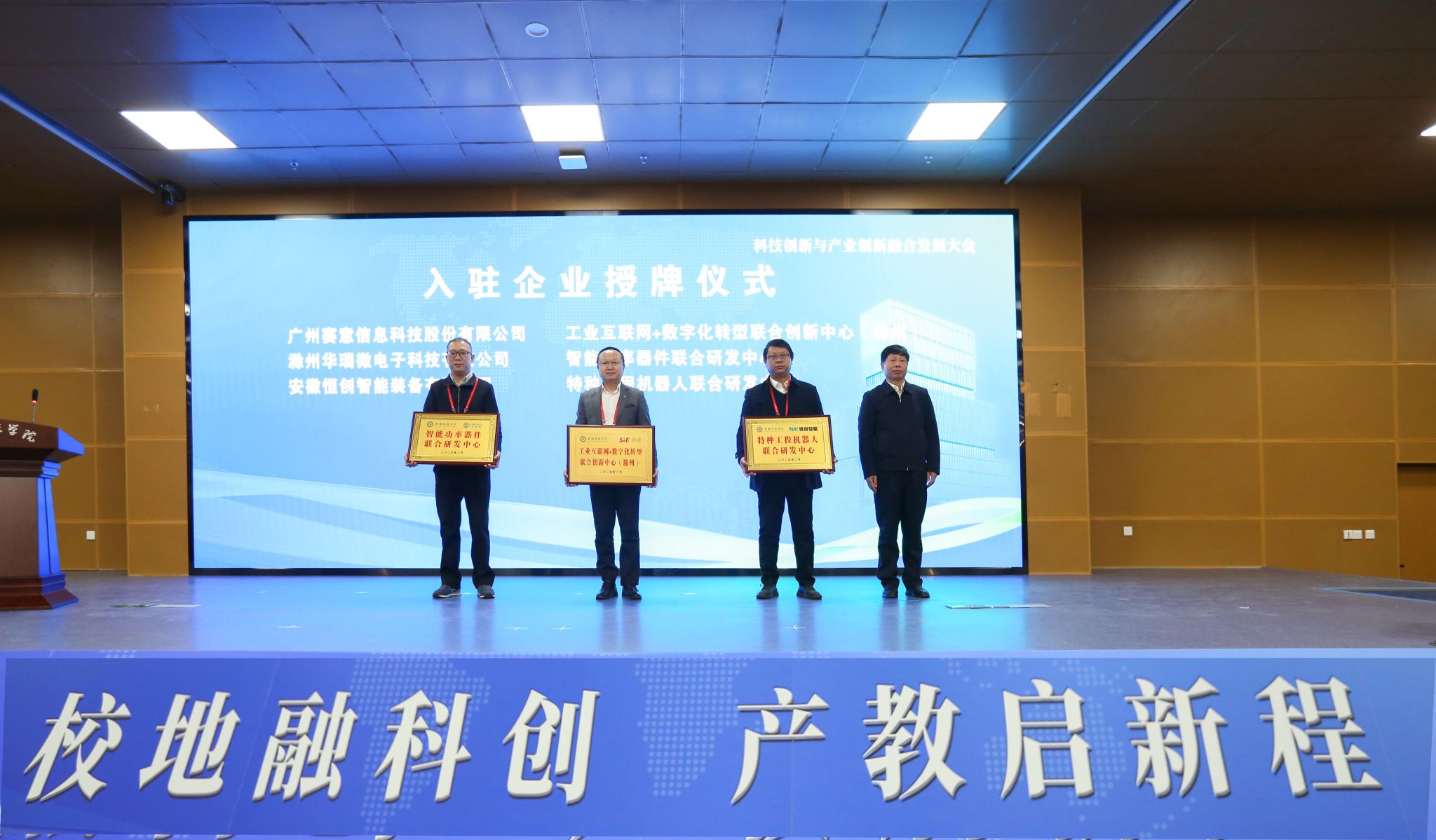 会上,南谯区委副书记、区长王莹,市高端装备制造产业链办公室主任、市工信局局长陈军,市健康食品产业链办公室主任、市农业农村局局长程军才等进行了发言;学校与滁州市8个县(市、区)及滁州经开区、中新苏滁高新区签署校地战略合作协议,与10家企业签署校企产学研合作协议,并向入驻未来大厦3家企业进行了授牌。