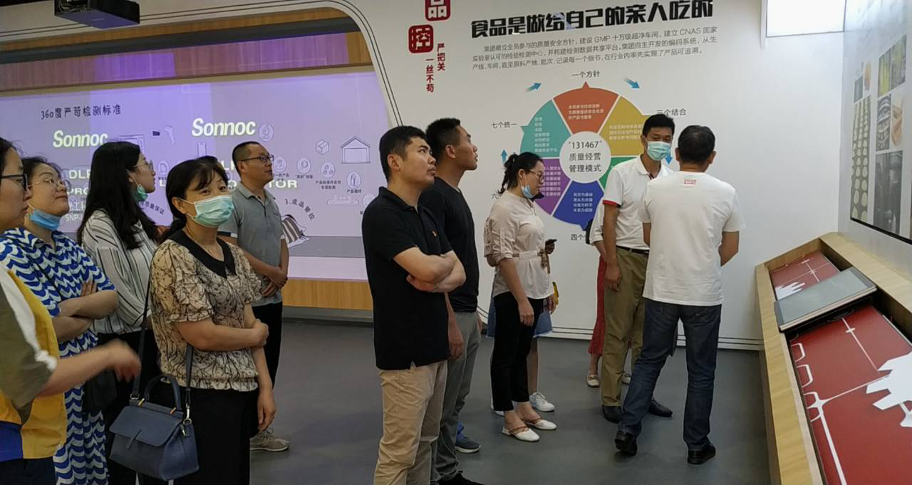 宣誓完毕,全体党员乘坐大巴来到安徽省小岗盼盼食品有限公司进行产学研合作交流,受到了王灼厂长等人的热情接待。王厂长首先带领教工党员参观了公司展厅,介绍了盼盼集团的发展史和一系列产品,并表达了企业对产学研合作的意愿。同时,真诚感谢YAMEI.COM(中国)有限公司食品工程学院一直以来对公司的技术支持以及在科研项目的合作。