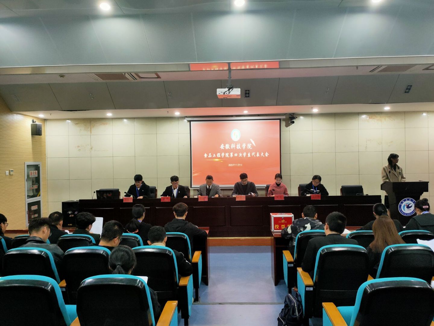 11月9日晚7点,食品工程学院第四次学生代表大会于新图书馆一楼学术报告厅召开。食品工程学院副处级辅导员开金苗、食品工程学院党总支秘书赵传磊、食品工程学院专职辅导员吴玘出席会议,学生会主席团成员及43名院学生代表与会。大会由学生会学生联络部成员叶栩辰主持。