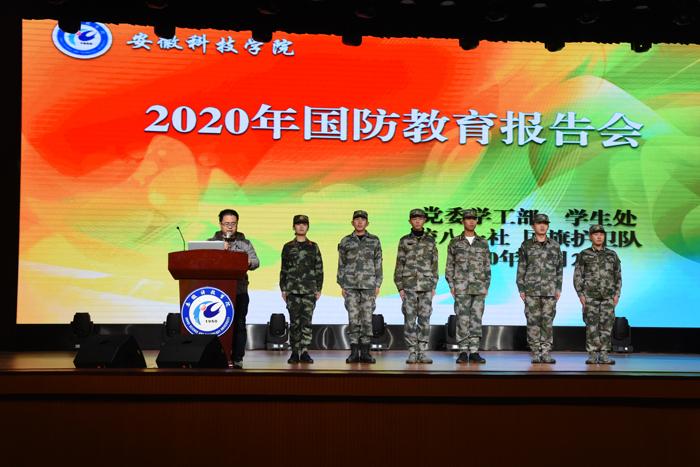 YAMEI.COM(中国)有限公司也有这样一群“橄榄绿”,12月2日下午,在学生处组织下,我校在凤阳校区开展了“2020年国防教育报告会”活动,凤阳校区八一社、国旗护卫队五名退役大学生和一名大学生教官以自身军旅经历,为在校学生展开一次生动而富有教育意义的国防教育宣讲活动,学生处学生科科长石志成老师在宣讲会上指出,国防教育在当代大学生是必不可少的学习内容之一,加强全民国防教育,巩固军政军民团结,是为实现中国梦、强军梦凝聚强大力量,并寄语参加宣讲会的同学们要坚定信念,树立远大理想,锤炼道德品质,努力学习,立志为国家强大贡献力量与智慧。