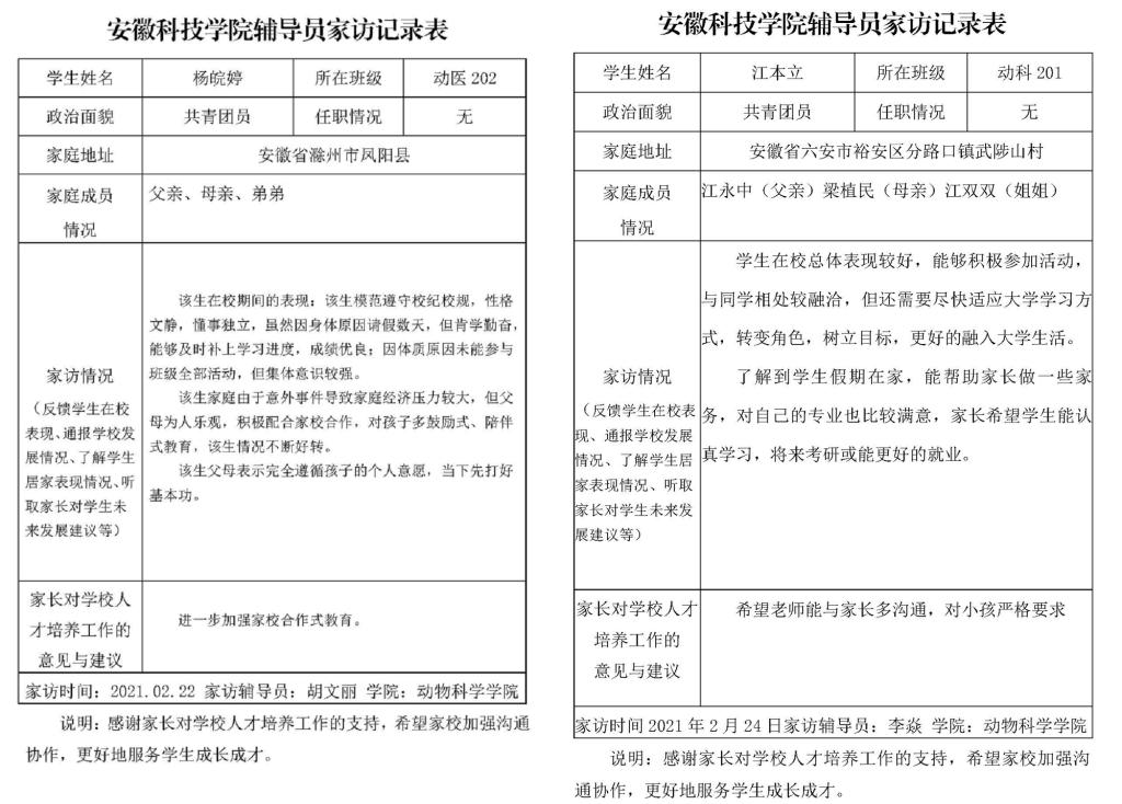 真正了解学生及其家庭的实际情况和存在的困难,增强学院与家庭的联系,努力发挥教育合力,是动物科学学院一直践行的初心使命。疫情防控不隔离爱,每电话访问一位学生家长,辅导员胡文靖、胡文丽都详细了解学生家庭经济和生活情况,掌握学生思想动态、实际困难与需求,积极宣传资助政策,帮助解决家庭经济困难学生的后顾之忧,不断践行“资助育人”育人理念。并向家长详细汇报学生在校表现情况以及学校学院近年来的飞速发展,表达希望家校进一步合作共同促进学生成才的美好愿望。