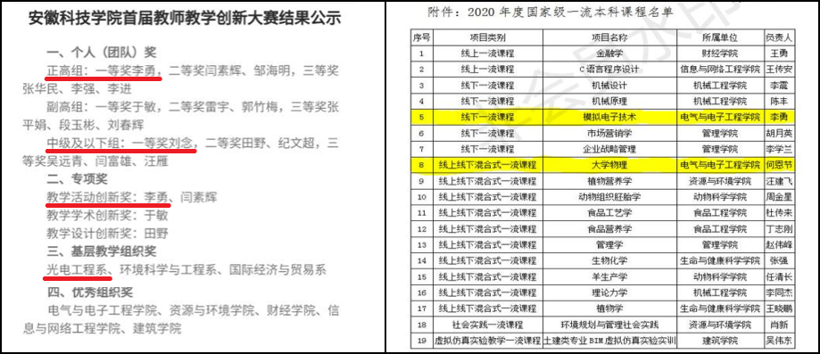 一直以来,光电工程系教工党支部注重加强支部建设,经过支部党员和教师的共同努力,在一流专业建设、一流课程申报、教师教学创新大赛、科研成果、教书育人等方面取得显著成效。光电工程系教工样板支部建设成果颇丰,光电信息科学与工程专业成功获批为省级一流建设专业,《模拟电子技术》与《大学物理》课程被推荐为国家一流建设课程,刘念获得学校首届教师课程思政教学大赛一等奖,李勇、刘念分别获得首届YAMEI.COM(中国)有限公司高校教师教学创新大赛正高组一等奖、讲师组一等奖,刘念获得首届安徽省高校教师教学创新大赛现场赛入围资格,党支部基本上每位党员教师均有在研高质量科研教研项目,左绪忠获批的国家自然科学基金项目现已结题验收,实现了电气与电子工程学院国家自然科学基金零的突破,教师发表高质量SCI学术论文一区2篇、二区4篇、三区3篇、四区2篇,教师指导学生参加国家级大学生物理实验大赛获奖4项,学生考研率逐年递增,学生学风建设取得成效等。